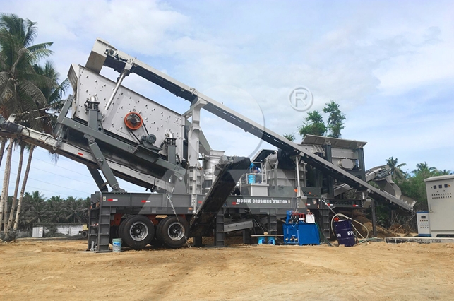 移動(dòng)車架選用輪胎式結(jié)構(gòu),適合穩(wěn)定場地,能夠節(jié)約很多的時(shí)間和人力物力成本。破碎機(jī)是輪胎式移動(dòng)破碎站的核心部件,可依據(jù)需求選用顎式破碎機(jī)、沖擊式破碎機(jī)、圓錐破碎機(jī)、沖擊式破碎機(jī)等,有近100種配套方案可供選擇。為了確保給料均勻,破碎機(jī)前應(yīng)裝置振動(dòng)給料機(jī),振動(dòng)后送入破碎機(jī),顆粒較小會(huì)落在棒料空隙中起篩分效果。篩分體系主要設(shè)計(jì)用于二次破碎,為了確保集料的高質(zhì)量和更好的功用。選用皮帶輸送機(jī)連接振動(dòng)給料機(jī)、破碎機(jī)、振動(dòng)篩的效果,將每個(gè)工序處理后的原資料輸送到下個(gè)工序。